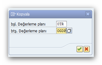 Yeni oluşturulmak istenen değerleme planı, Türkiye için yapılmış olan ve SAP sisteminde hazır bulunan 0TR değerleme planından kopyalanabilir.