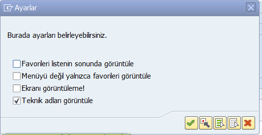 Sap Sisteminde her menünün bir işlem kodu yani teknik adı bulunmaktadır. SAP menüleri bu işlem kodları ile çağrılır. Bu teknik adların, menü isimlerinin yanında görüntülenebilmesi amacıyla yapılması gereken işlem aşağıda ki gibidir.